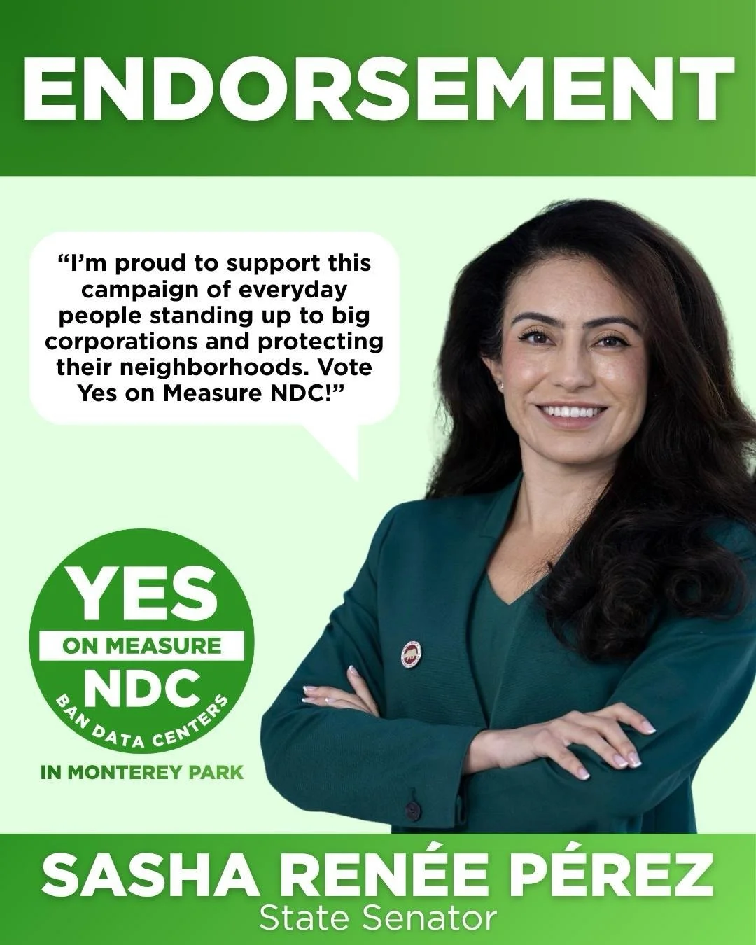 We are at a critical moment. The City of Monterey Park has placed a temporary pause on data centers, but it will not last. We need voters to vote YES on Measure NDC to ensure long-lasting protections against data centers.